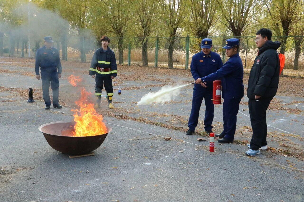 活动现场同时设置了灭火器实操区,学生在专业人员指导下按照“提、拔、握、压”的操作步骤,对准模拟火源进行扑救练习,切实掌握初期火灾处置能力。