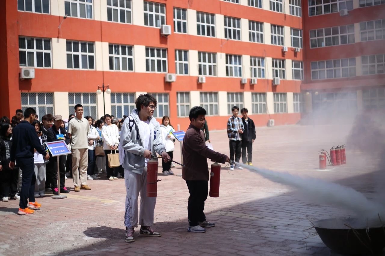在实操演练中,师生使用灭火器按照“提”“拔”“握”“压”的动作要领进行了灭火的规范操作,在亲身体验过程中进一步掌握了干粉灭火器的使用要领。