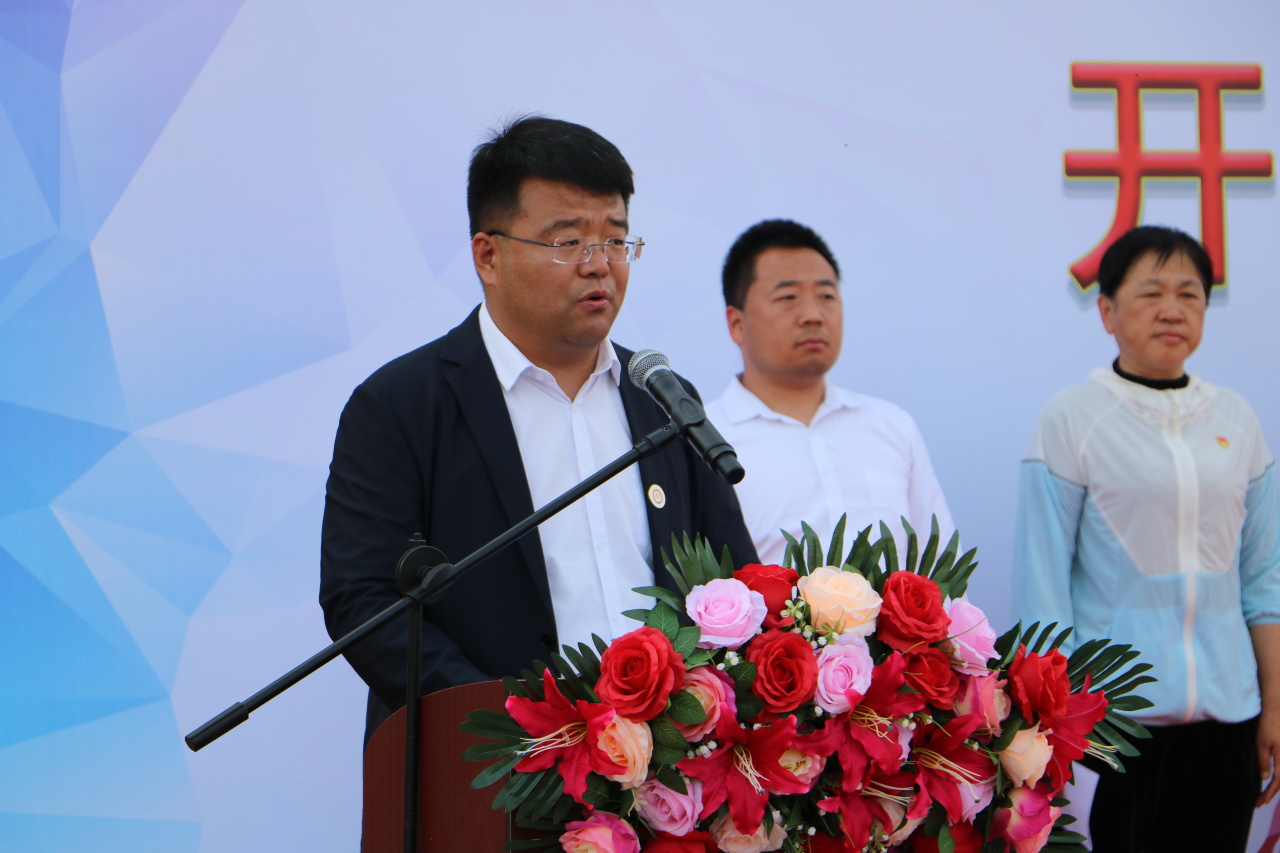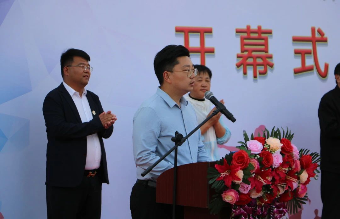 各位运动员整齐列队,啦啦队表演精彩节目,主持人焦岩处长宣布开幕式开始。