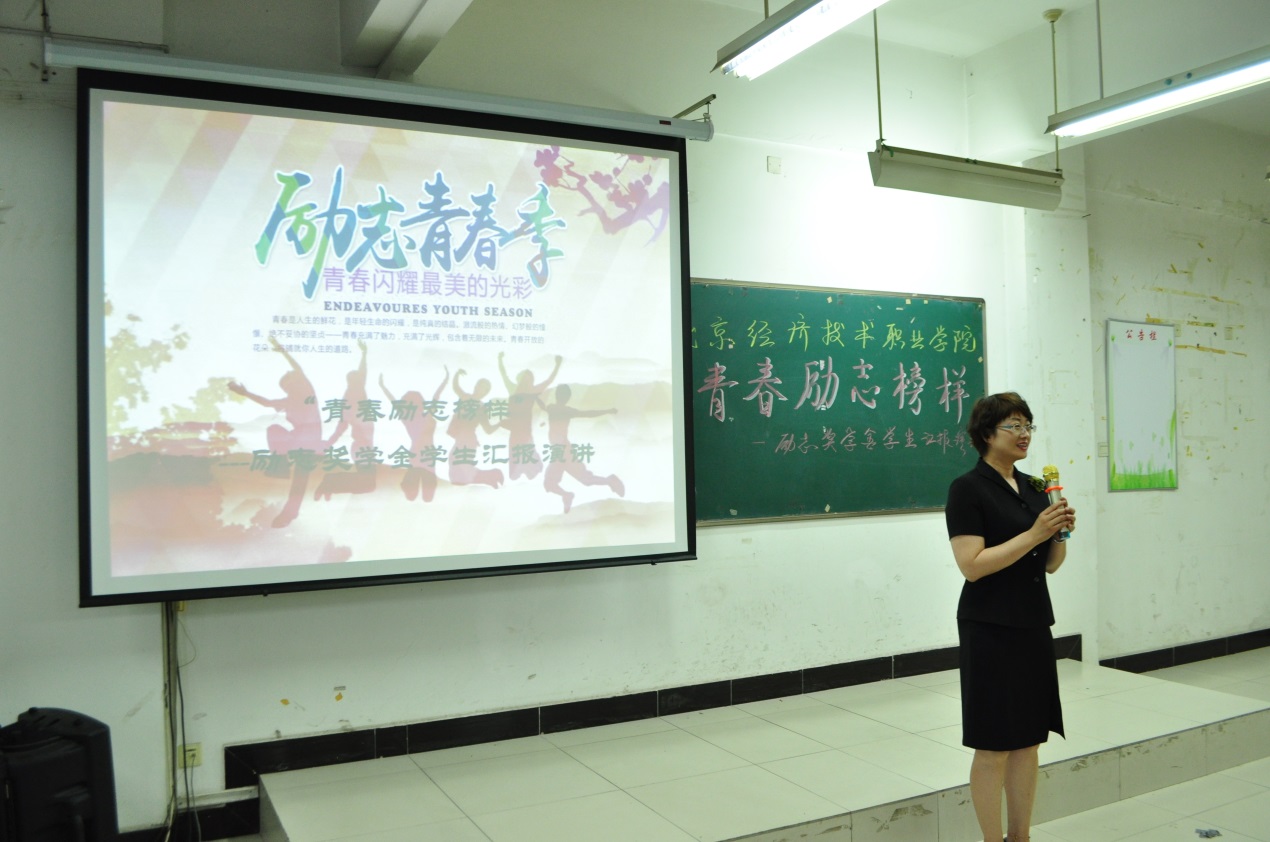 孟宪云老师做了点评,8位同学的先进事迹催人奋进,希望在场所有的同学们树立伟大理想,明确奋斗目标,创先争优,自立自强,励志成才,为自己的未来开拓美好前程。
