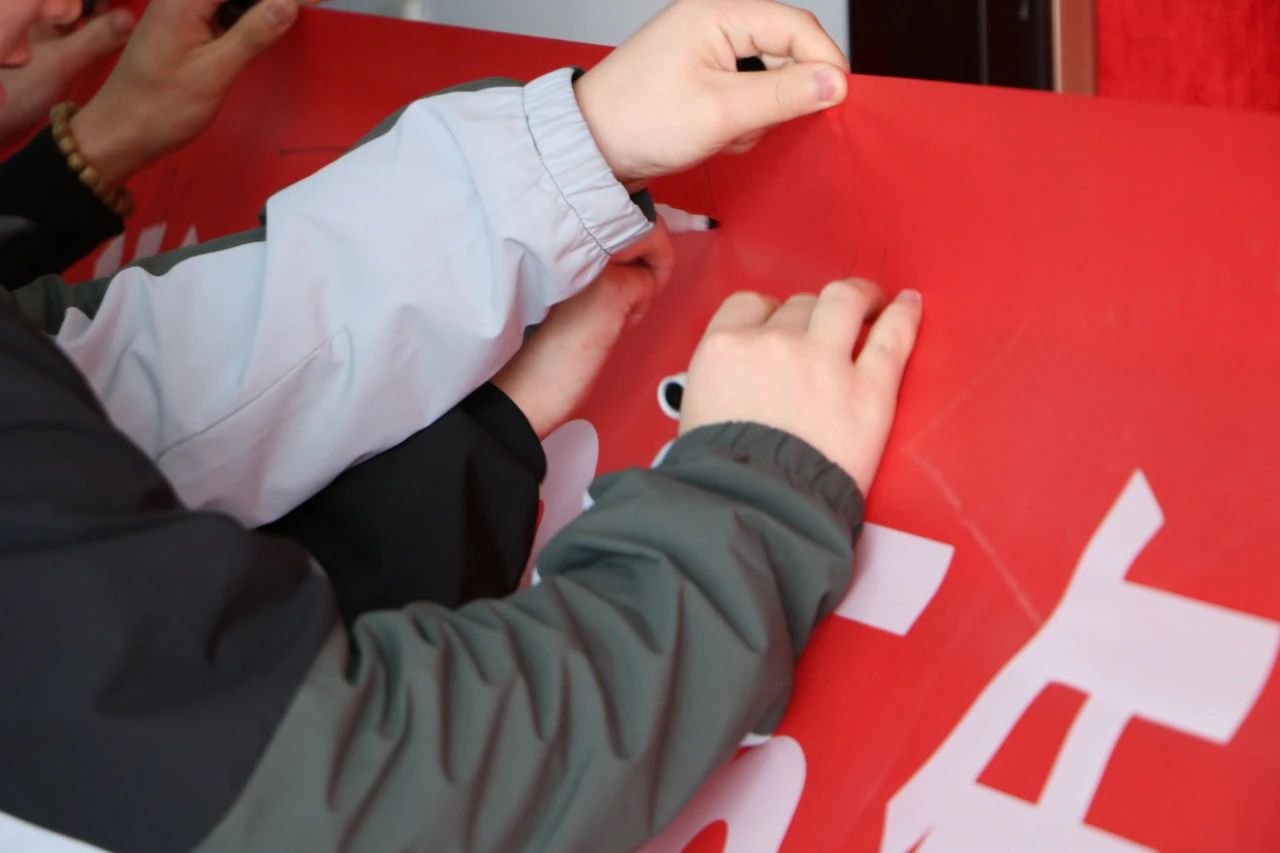 最后,同学们纷纷在横幅上签下自己的名字。他们挥毫泼墨,铁笔银钩,力透横幅,以青春之名立誓,用热血之约明志,不负师恩如海,不负岁月鎏金,更不负无数个日夜灯火长明的坚守!
