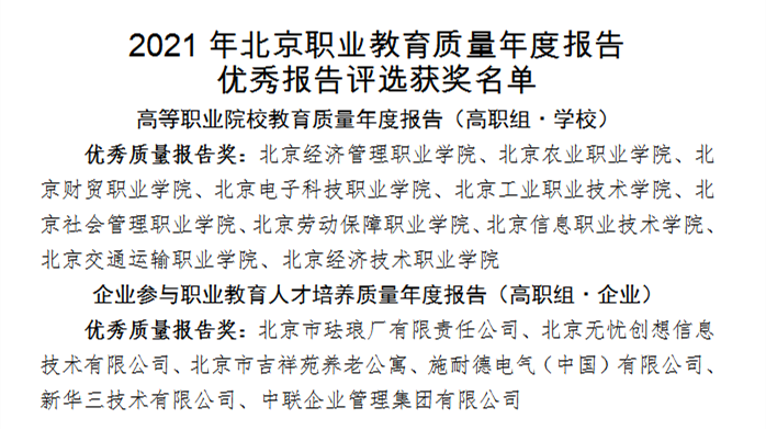 为深入贯彻全国职业教育大会精神,落实国家职业教育提质培优行动计划,推进北京职业教育高质量发展,发挥职业教育质量年度报告制度的作用,推动职业教育履行责任担当、展示发展成果、接受社会监督,北京市教委按照教育部要求,在系统总结近年来北京职业教育质量年度报告工作基础上,组织开展了2021年北京职业教育质量年度报告优秀报告评选。