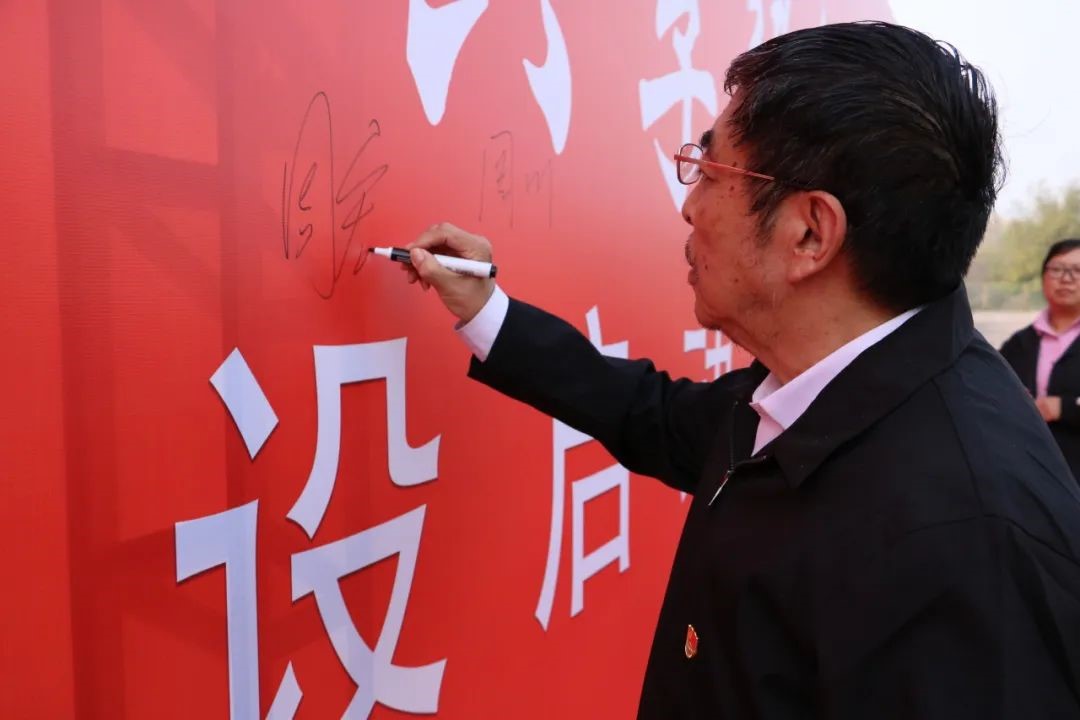 随后学院领导率先在背板上签名承诺建设无烟校园,师生代表也上台签名承诺。
