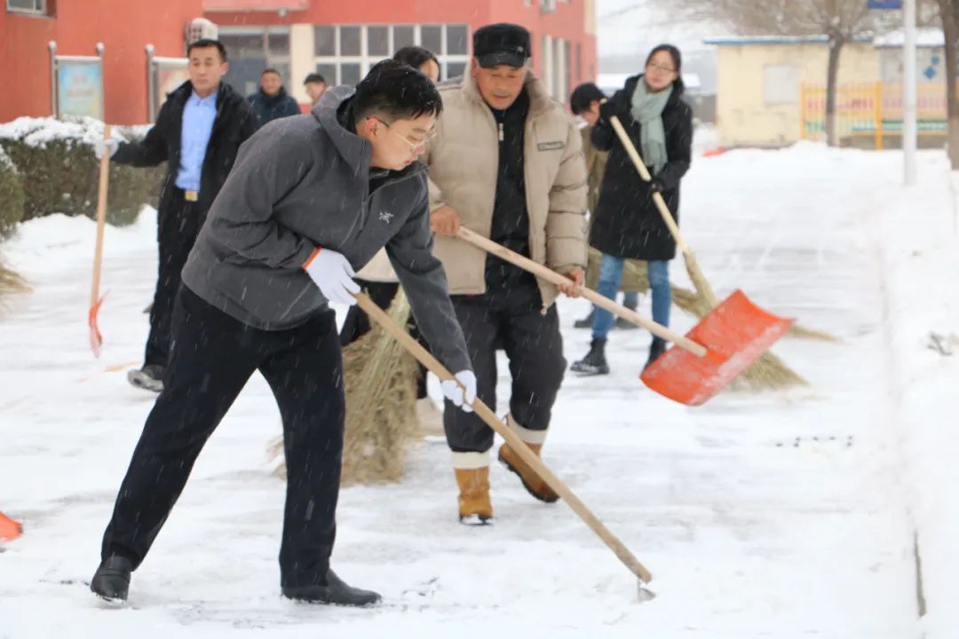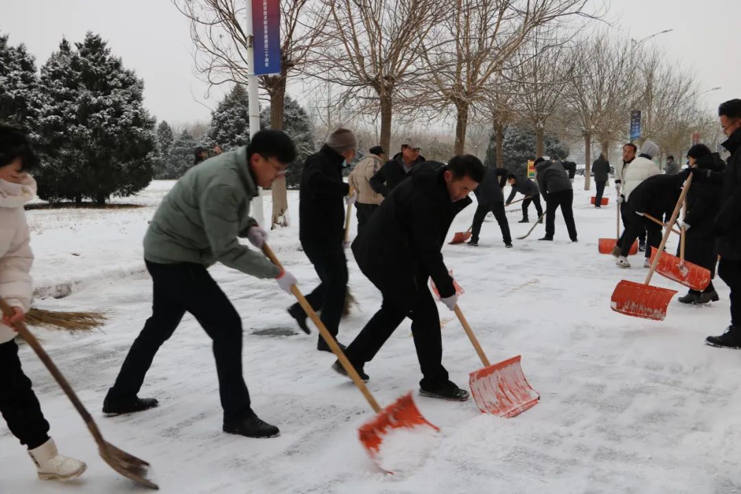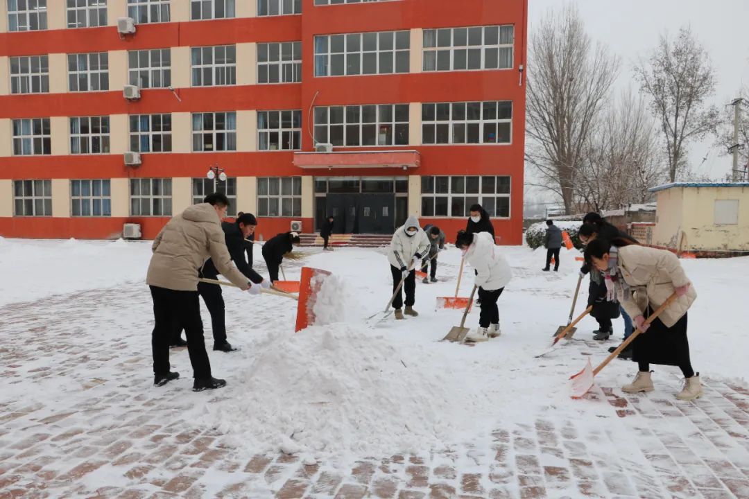 寒冷的空气并没有影响大家的热情和工作效率。大家分工明确、配合默契,齐心协力,干劲十足。风雪中,一张张冻红的脸庞、一个个忙碌的身影构成一道道亮丽的风景线。经过奋力清扫,教学楼至生活区甬路的积雪被清理,为师生提供了方便、安全的出行环境。